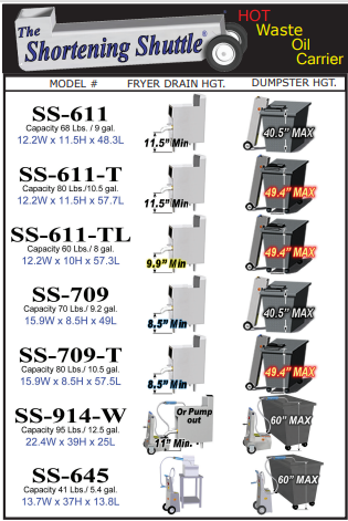 Unsere Auswahlhilfe für The Shortening Shuttle® vereinfacht die Auswahl des idealen Modells für Ihren Gastronomiebetrieb und geht auf die besonderen Anforderungen von Restaurants, Convenience Stores, Imbisswagen und Großküchen ein.